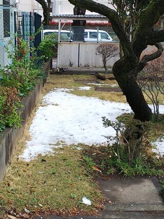 春の雪は時々降りますが、今朝は、残雪が見られました