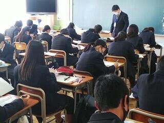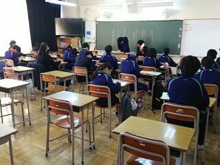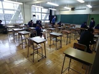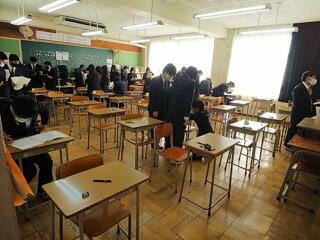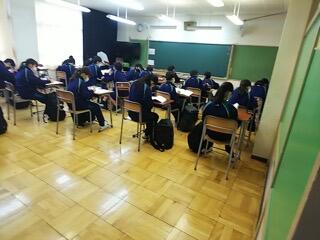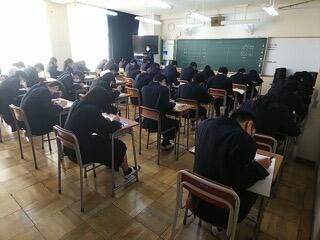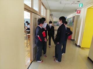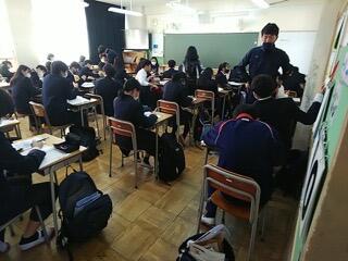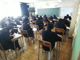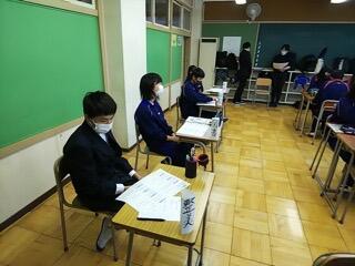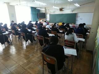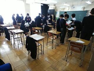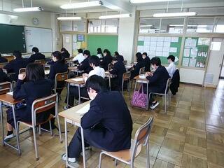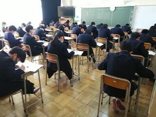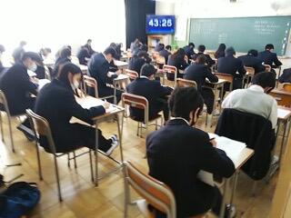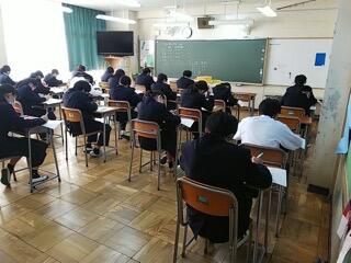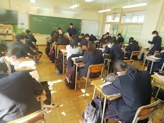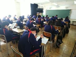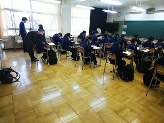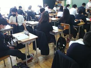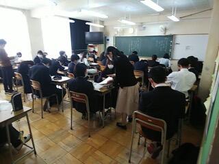 テストの合間の休憩時間に3年生を見に行くと、皆さんあちらこちらで次の教科の確認をしていました。