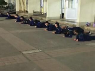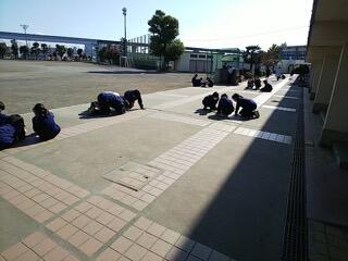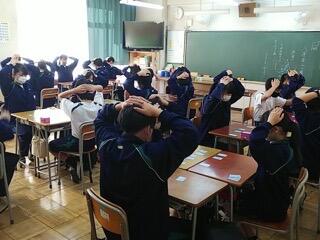 避難訓練として不審者対応訓練を行いました。不審者役の教員が侵入!