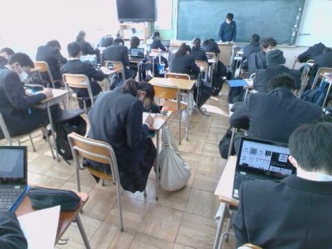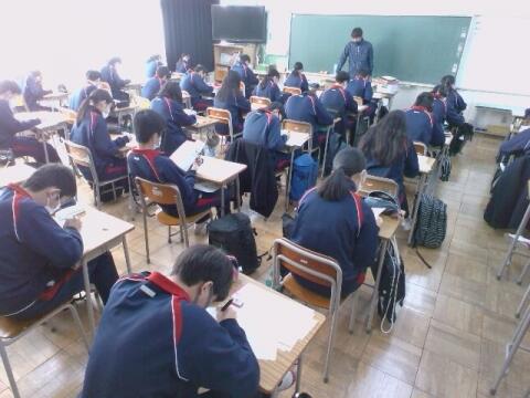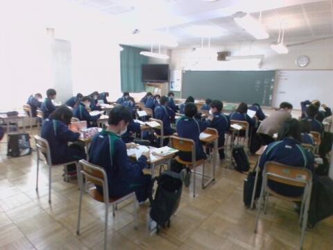 三年生は、駆けつけたときにはすでに生徒の発表が終わっていましたが、その後出願書類や日程について、確認があり、緊張感が感じられました。