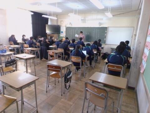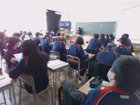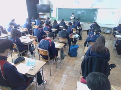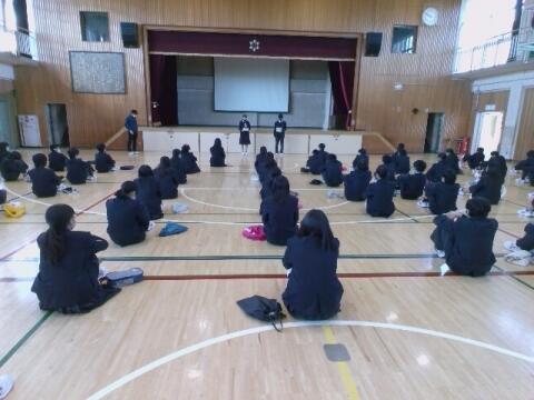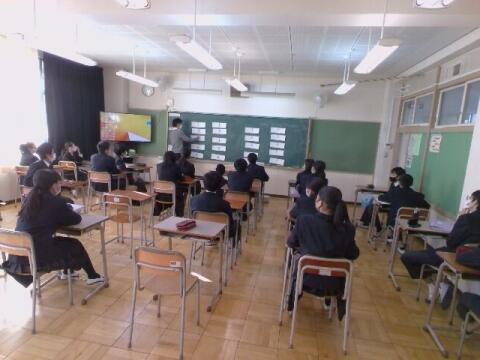 一年生は六校時に学年でスキー教室の事前学習をしました。