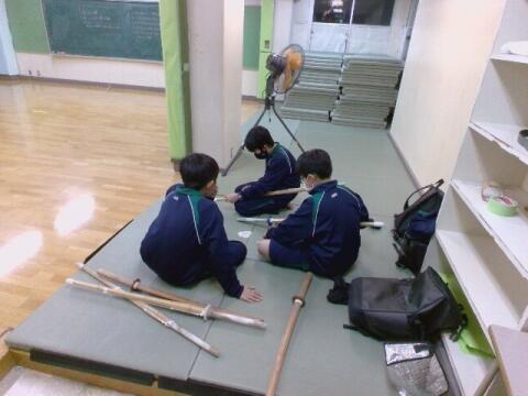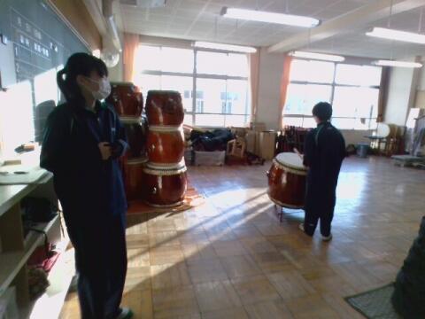 太鼓部の自主練習 自主的に準備練習をしていました。