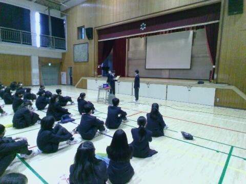 終業式では生徒会からの話、式後には生活指導や表彰を行いました。