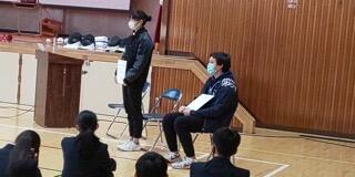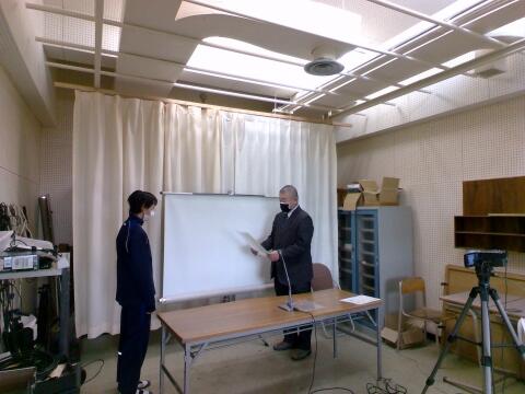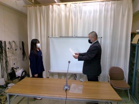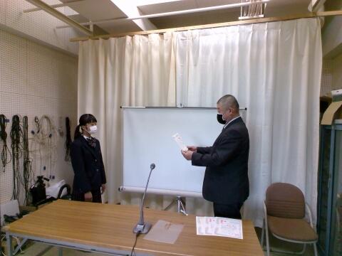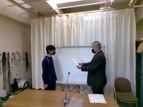 先週金曜の3年の集会で表彰をしましたが、その時の授与の様子をビデオで全校に紹介しました。