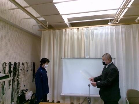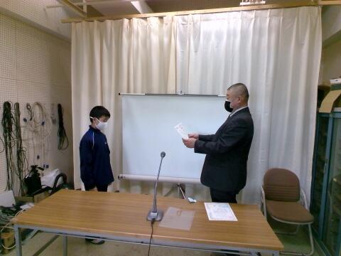 立川市体育協会のジュニア地域育成事業で優良選手賞を頂いた生徒1名を表彰しました。