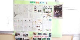 1年生の廊下に、高尾山について調べた報告が掲示されていました。