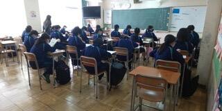 学級活動の時間に、目標など立てる活動をしているクラスがありました。