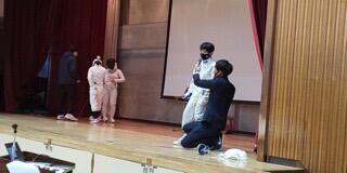 式前に歌を学年教員に贈っていました。
