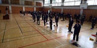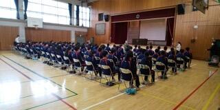 すでに体育館で二学年合同の活動はしていましたので体育館での式としました。