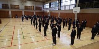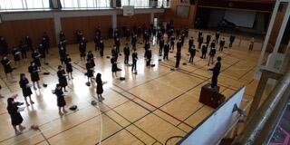 整列間隔をとって並ぶと体育館いっぱいです。