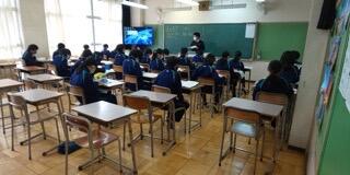 そこで、今日、春休みの初日ではありますが、代表生徒が登校してgoogle meetを使って交流事業に参加しました。