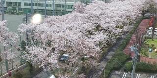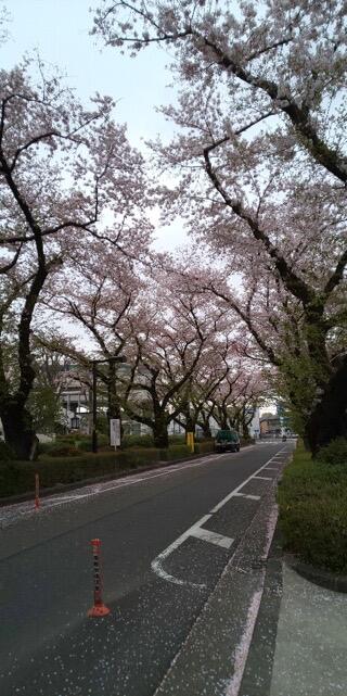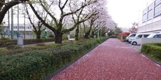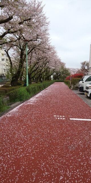 桜は徐々に散り始め泉体育館の周回路は桜の花びら模様になっていました。