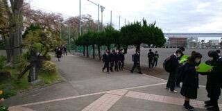 放課後の部活動が90分間と市で統一されましたので今日はまだ明るいうちですが一斉に活動をやめて下校指導をしました。