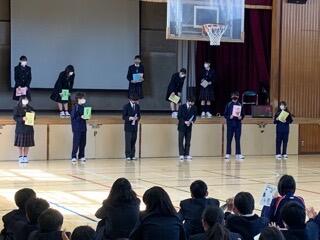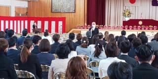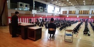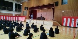 教室で学活の後、新2年生と新3年生は体育館で着任式と始業式に臨みました。