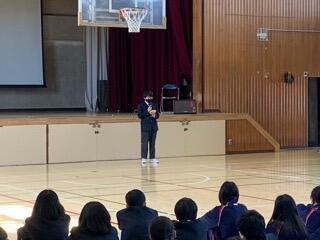 2、3年生も先日始業式で並んだとはいえ、ほとんど経験がない中でしっかりと整列し話を聞いていました。