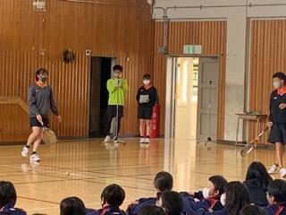 大きな声がすると思って出てみると1年生が大きな声で挨拶していました。