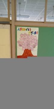 朝、生徒昇降口前ではクラス発表のプリントが配られており、生徒の歓声が校長室でも聞こえました。
