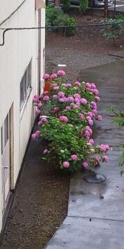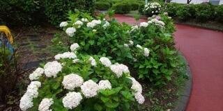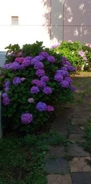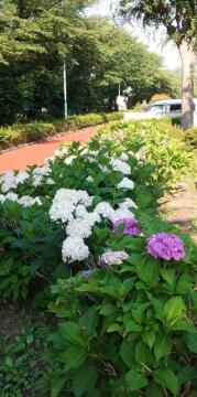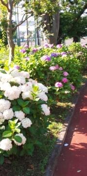 泉体育館の紫陽花 と、本校校舎西側の紫陽花