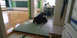 並ぶ時に縦横気をつける。入場後の止まる際前へならいで列を整える。協議の時にマスクを外し競技直後につける。