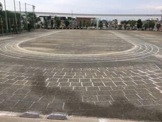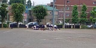 用務さんは生徒の日除けのテントを他校から借用する際や返却する際に、大活躍していただきました。