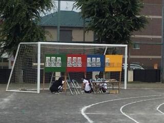 ゴールは結構忙しい ボール運びの道具を元に戻す用具係
