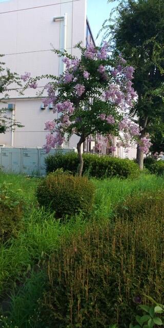 出勤途中に泉体育館の花壇の百日紅が綺麗な花をつけていることに気付きました。