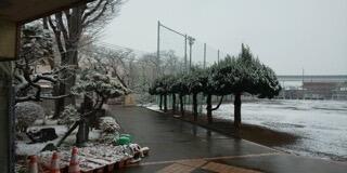 さて、今日は午後から雪模様となり、校庭も白くなりました。