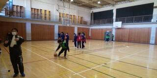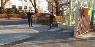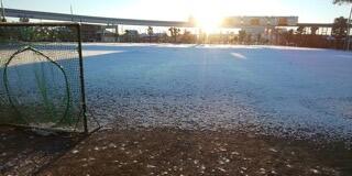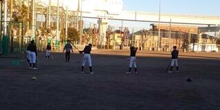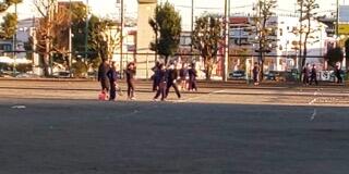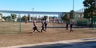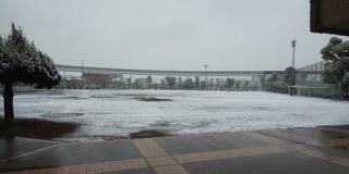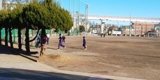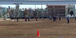 雪の消えた校庭で頑張る野球部とソフトテニス部