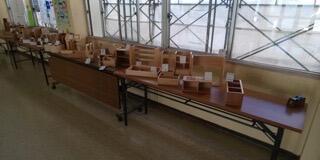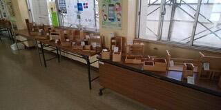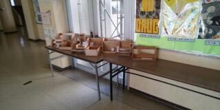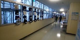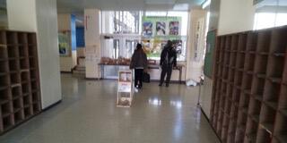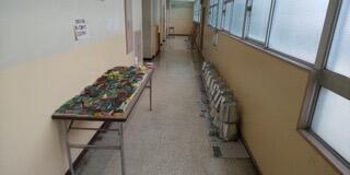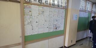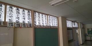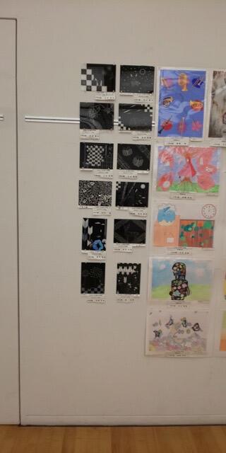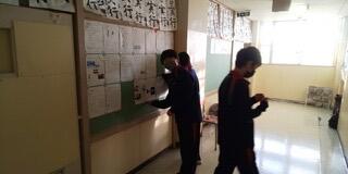 日曜の土曜授業公開を前に、作品の掲示がされています。