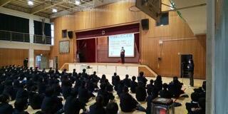 始業式では一人一人が自己の目標に向けて努力し、周囲を支援できる様に頑張ることが結果的に全体のレベルを上げて目標達成に近づけると話しました。