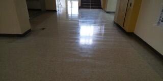 休み中に廊下にワックスが塗られ、綺麗になりました。