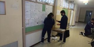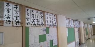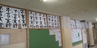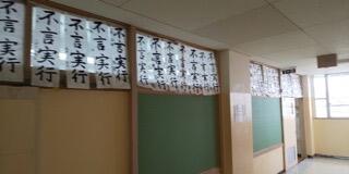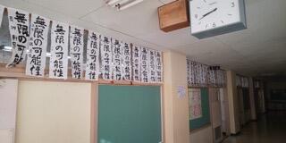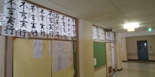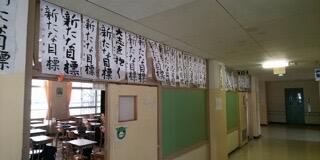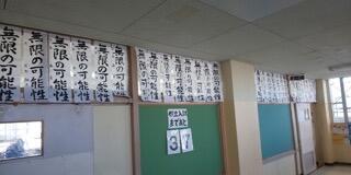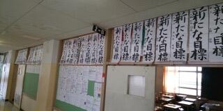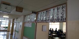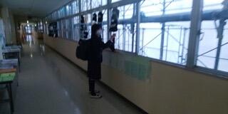今日の昼休みと放課後に、書初めの課題の展示作業がありました。