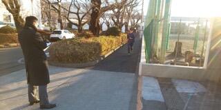 海に近い江戸川区でも朝は圧雪となり歩きづらい歩道でした。