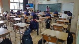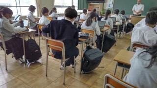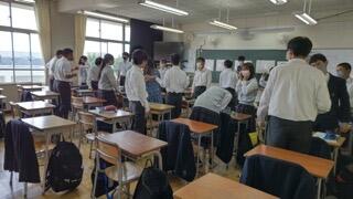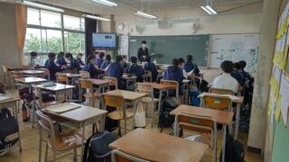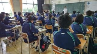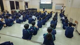 1年生は、午後体育大会の振り返りと校外学習に向けて集会を開いていました。