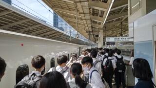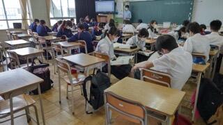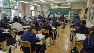 時間を気にして慌てる生徒。