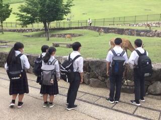 春日大社の駐車場で降りたので春日大社に向かう班が多かったです。