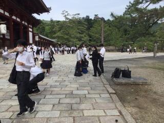 春日大社駐車場に降りたのでほとんどの班はまず春日大社へまた若宮八幡に向かう班もありました。その後大仏殿や二月堂を経由して大仏殿という班もありました。