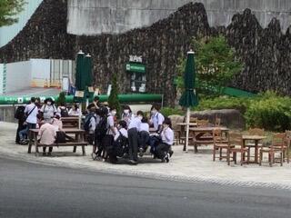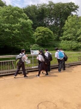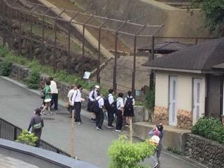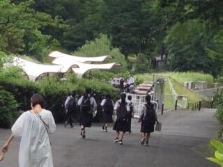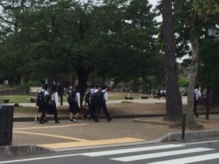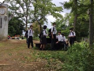 公園内を移動する生徒