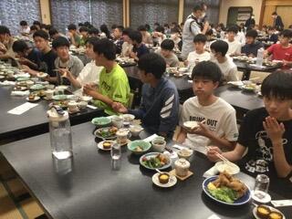 夕食前に消毒。時間通り集合。