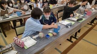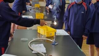 理科の教科での大学院研修生の実験の授業の様子