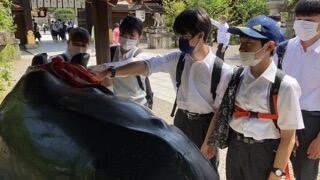 若宮八幡に向かう生徒
