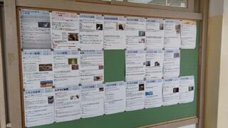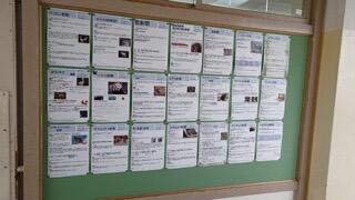 図書室前に、掲示物が貼られていました。季節を感じさせるものと、本など読んでみようという知識欲を刺激してくれるものです。