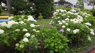 学校の敷地内を見回ってみると校舎の影に隠れたところに紫陽花が咲いているのに気付きました。