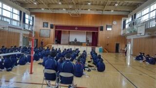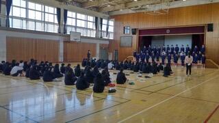 3学年も集会で振り返りと中学生の主張学年発表を行いました。
