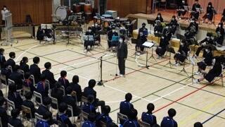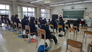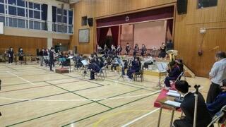 吹奏楽部も全体でテンポを合わせて練習していました。