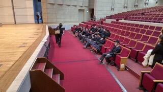 コンクール翌日に体育館で生徒向けに行う予定の部活発表に向けて真剣に取り組んでいました。