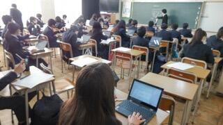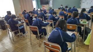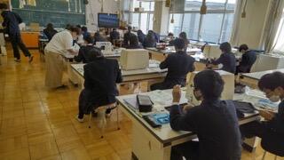 2年生は昨日までの行事について感想アンケートをタブレットで入力していました。
