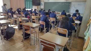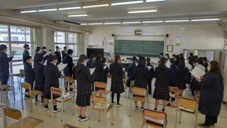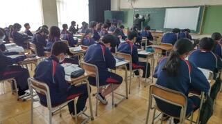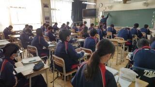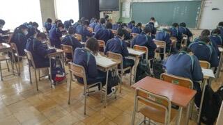 今朝、2年生では漢字の小テスト、1年生では単語の小テスト、3年生は学年集会が行われました。