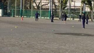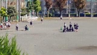 放課後早速練習を始める吹奏楽部と野球部、ソフトテニス部、バトミントン部