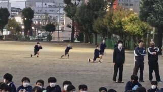 1人残らず5分以内に校庭に集合できました。